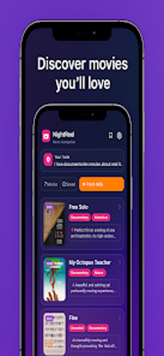 NightReel - AI Movie Picks เป็นแอปพลิเคชัน Android ที่มีนวัตกรรมออกแบบมาเพื่อทำให้กระบวนการเลือกภาพยนตร์ง่ายขึ้นสำหรับผู้ใช้ โดยใช้เทคโนโลยี AI ขั้นสูง มันเรียนรู้ความชอบของแต่ละบุคคลเพื่อให้คำแนะนำภาพยนตร์ที่เหมาะสม ทำให้มั่นใจว่าผู้ใช้จะพบภาพยนตร์ที่พวกเขาจะสนุกจริงๆ ด้วยฟีเจอร์ต่างๆ เช่น ตัวกรองที่กำหนดเองสำหรับประเภท ปี และการให้คะแนน ผู้ใช้สามารถนำทางผ่านตัวเลือกต่างๆ ได้อย่างง่ายดาย ในขณะที่ระบบอัปเดตประจำวันช่วยให้คำแนะนำสดใหม่และเกี่ยวข้อง